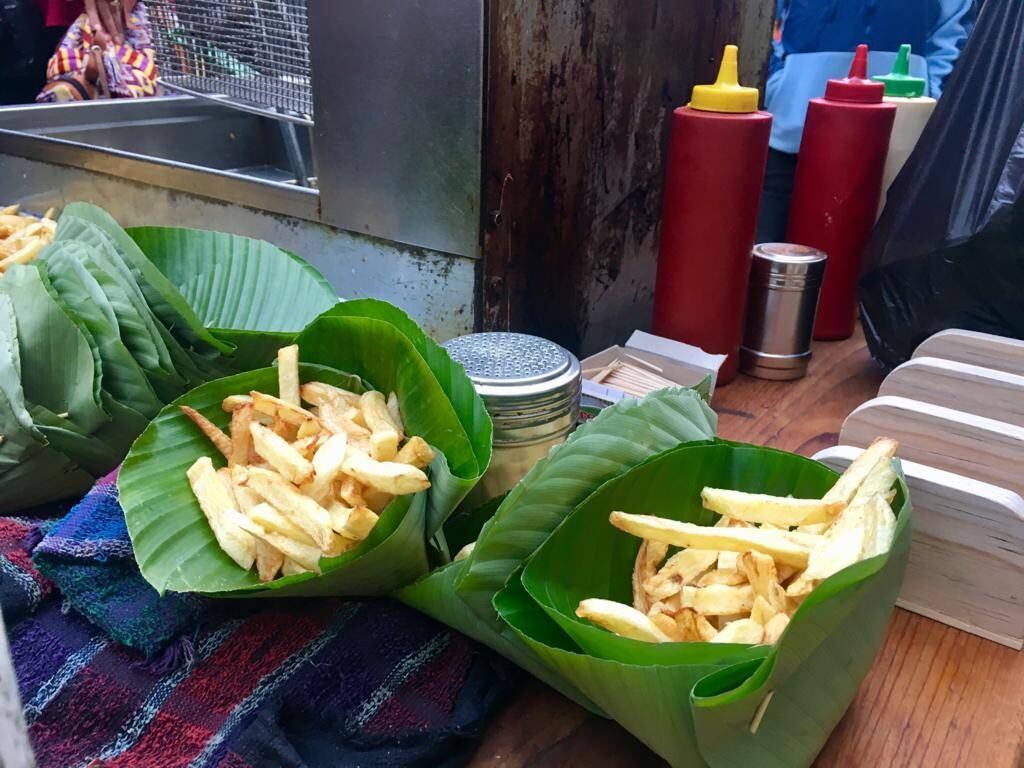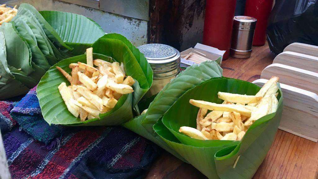 Por otra parte, el joven indica que sus platos son hechos de hojas de maxán y de "palitos de papas".