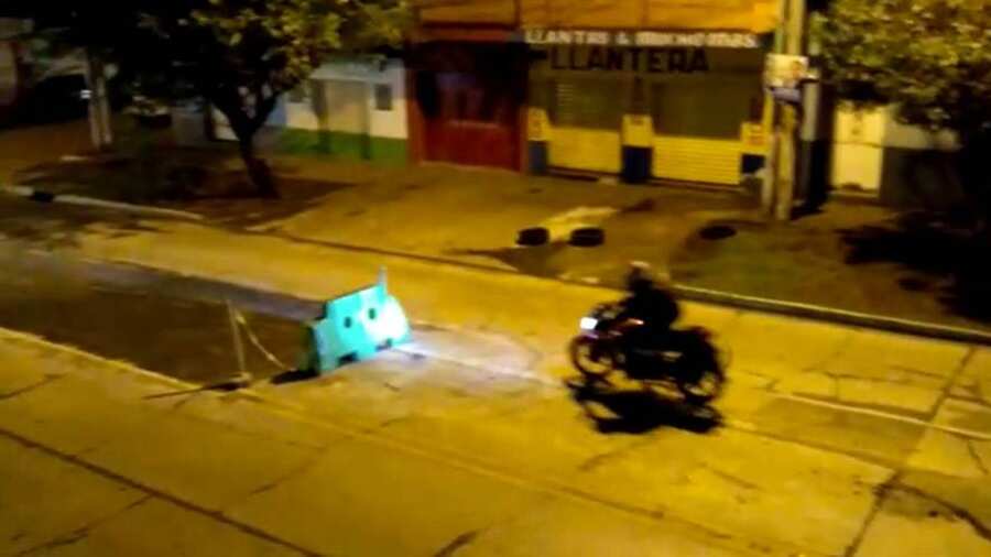 - El primero de ellos fue un motociclista. Se percata de último momento del separador y a pesar de que logra frenar, derrapa y cae al piso.