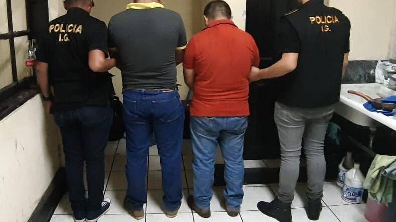Fueron sorprendidos en Los Álamos, zona 18 capitalina, frente a un restaurante en donde habían citado a su víctima para recibir el pago ilegal.