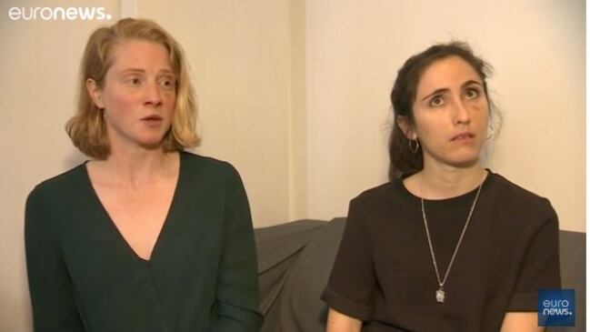 "Nos rodearon y empezaron a decirnos cosas realmente agresivas, cosas sobre poses sexuales, lesbianas y pidiéndonos que nos besáramos para que pudieran vernos", dijo Geymonat el viernes a la BBC.