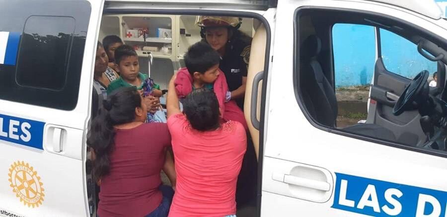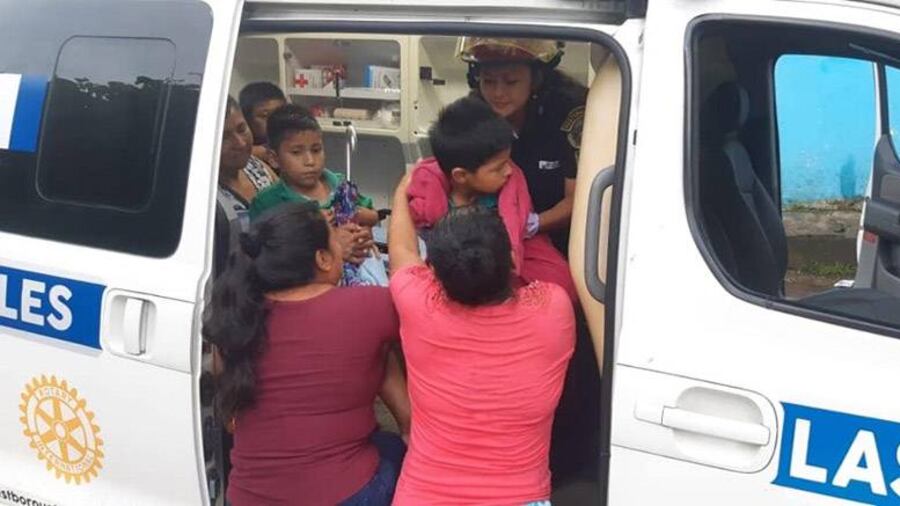 Los niños, procedentes de cantón Las Delicias, en Colomba Costa Cuca, Quetzaltenango, fueron trasladados en vehículos particulares y ambulancias.