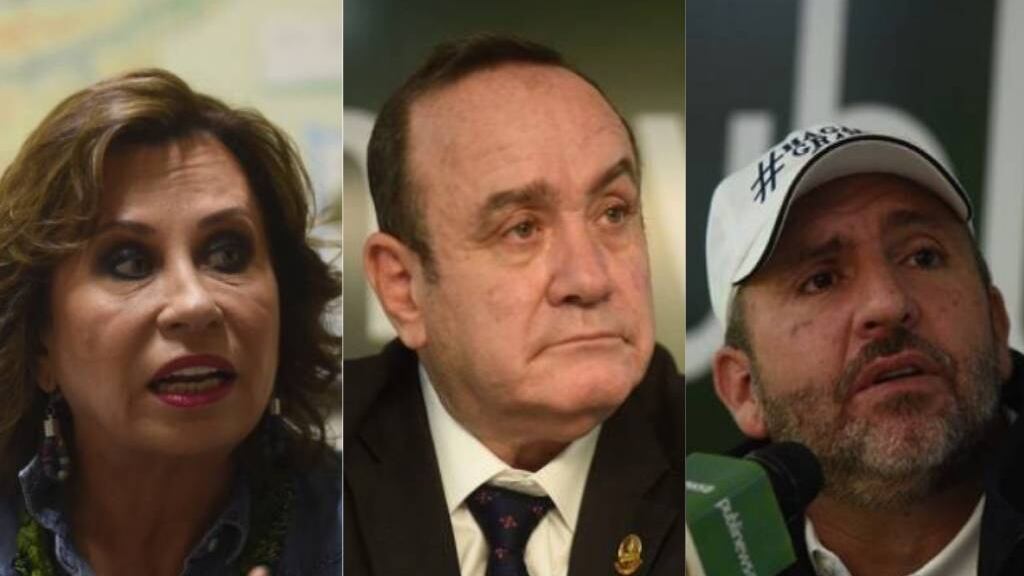 Los tres candidatos con mayor probabilidad, en este momento, de pasar a la segunda vuelta electoral son: Sandra Torres, del partido UNE; Alejandro Giammattei, del partido Vamos; y Roberto Arzú, de la coalición PAN Podemos.