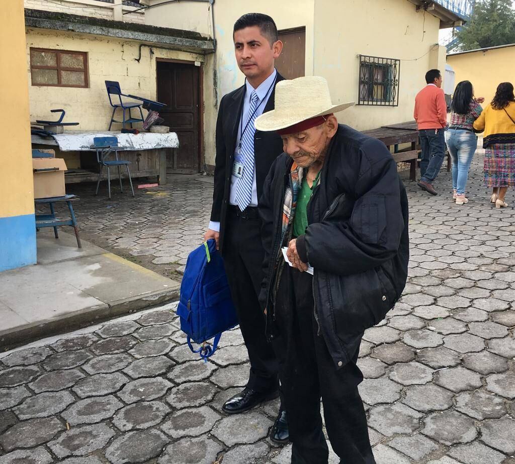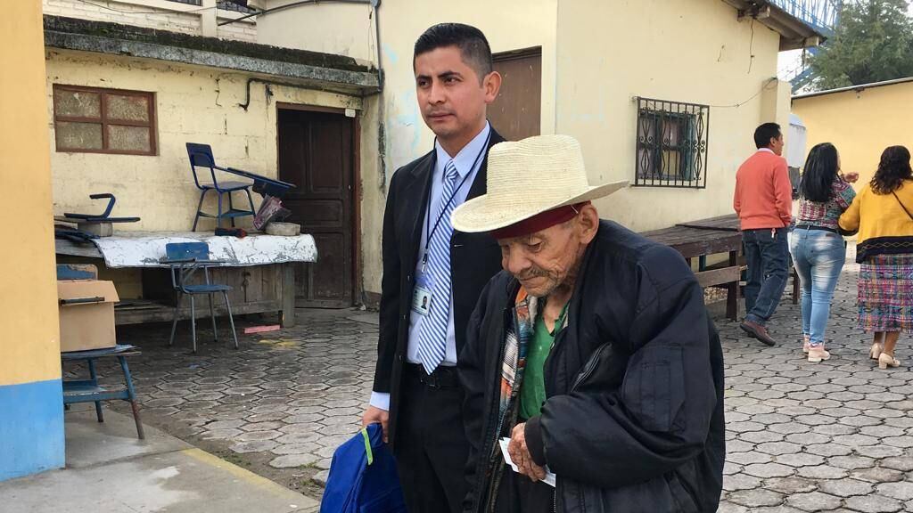 Sin que nadie lo acompañara acudió a la Escuela Normar Rural de Occidente ENRO, en Totonicapán. Ese es uno de los centros de votación más grande de la cabecera departamental.