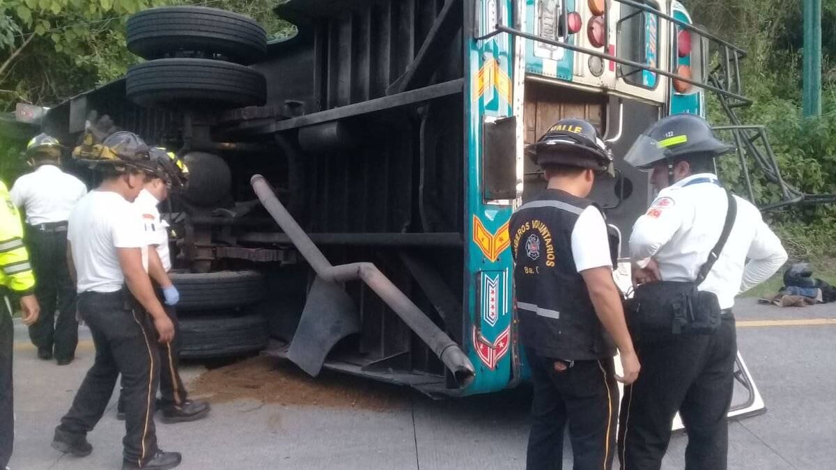 Varias personas resultaron heridas luego de que un bus extraurbano volcará en la ruta que conduce a La Antigua Guatemala, Sacatepéquez.
