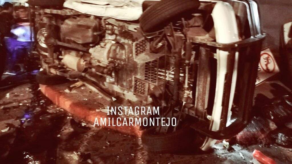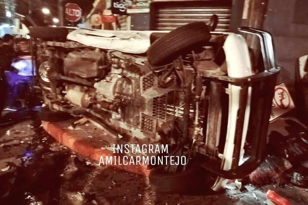 Tras una colisión, un vehículo quedó volcado sobre la 8ª avenida y 20 calle. Socorristas auxiliaron a los ocupantes.