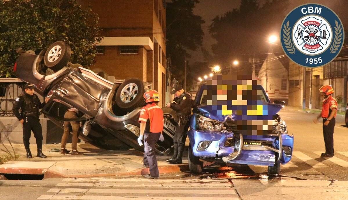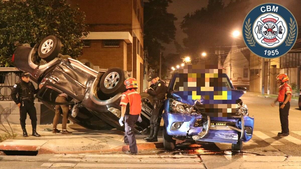 Anoche, en la 2ª avenida y 0 calle de la zona 10 capitalina, se dio un choque entre un vehículo particular tipo picop y una autopatrulla de la Policía Nacional Civil (PNC).