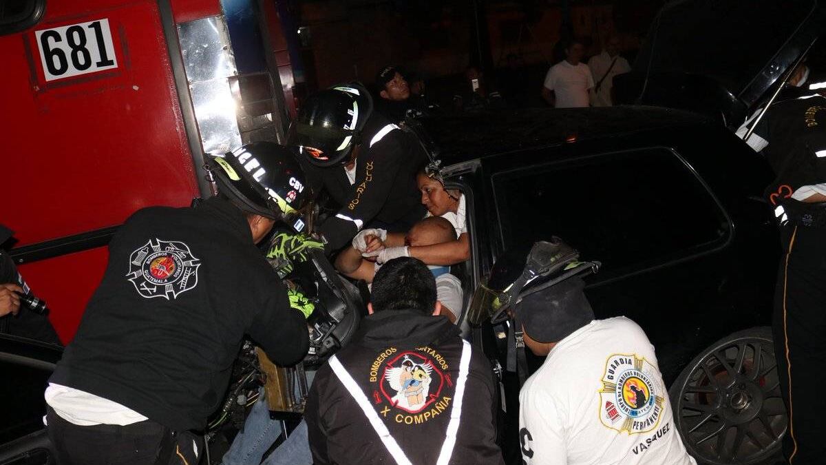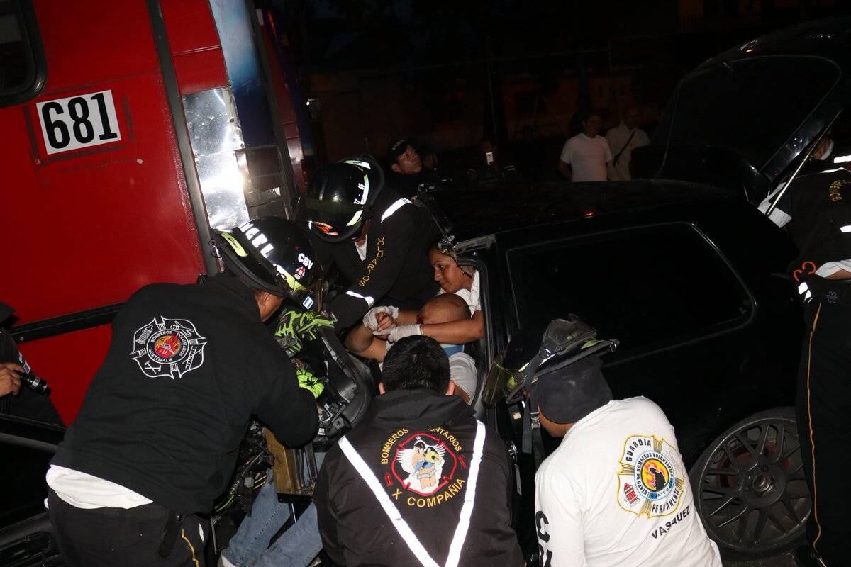 Dos personas fueron rescatadas aún con vida por parte de los Bomberos Voluntarios en la zona 6 capitalina tras un fuerte accidente de tránsito.