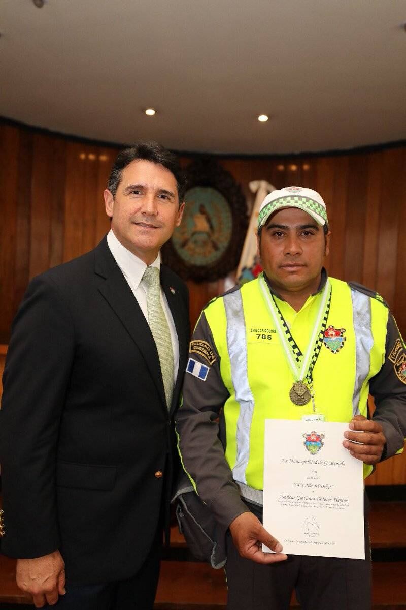 Amílcar Giovanni Dolores Pleytes recibió una medalla y también recibió un diploma firmado por el alcalde.