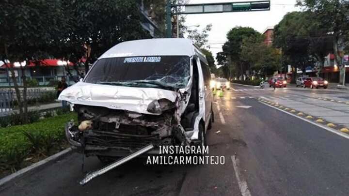 El conductor del microbús quedó atrapado en los hierros retorcidos de la cabina del vehículo y fue necesaria la presencia de los bomberos.