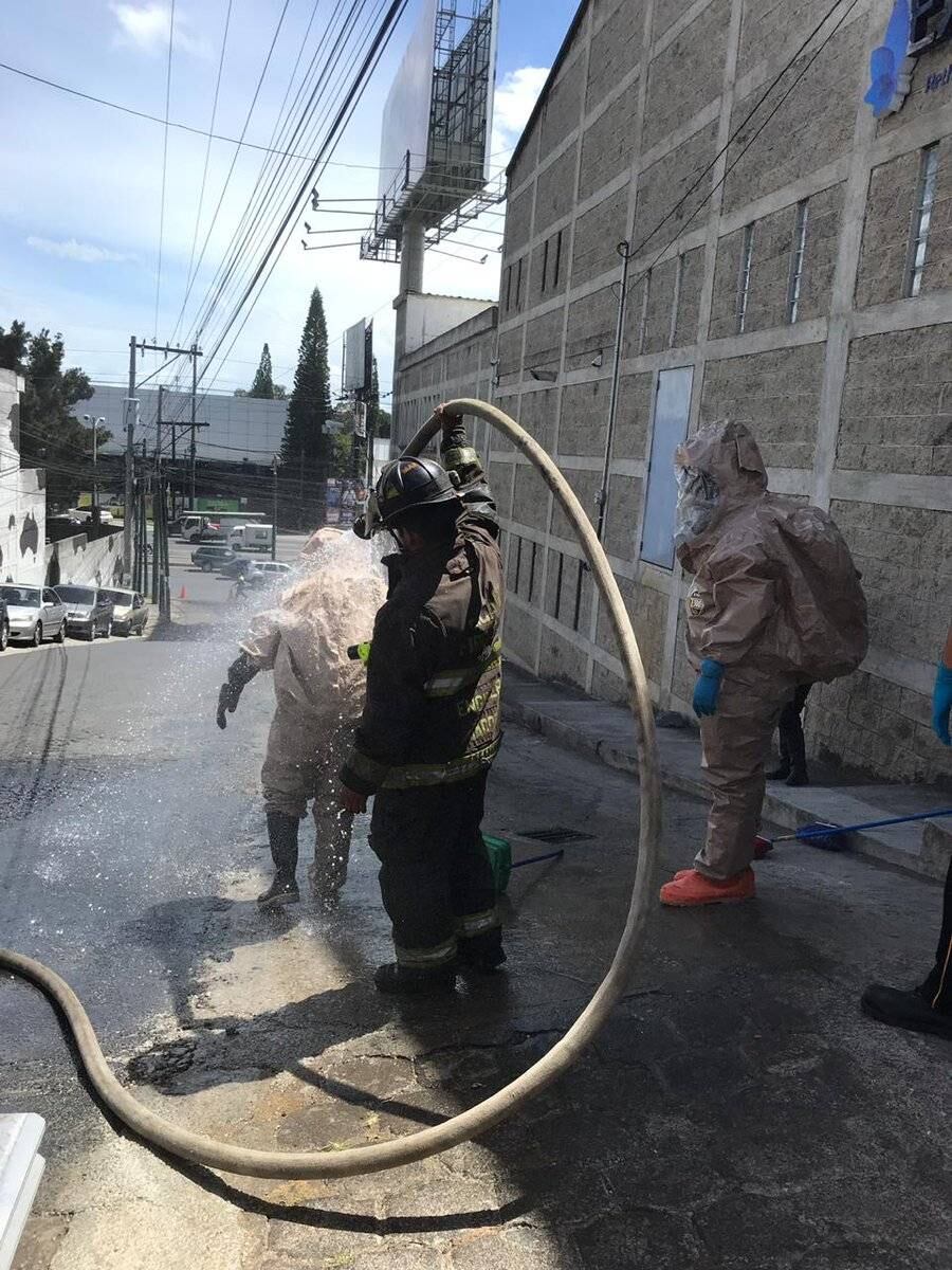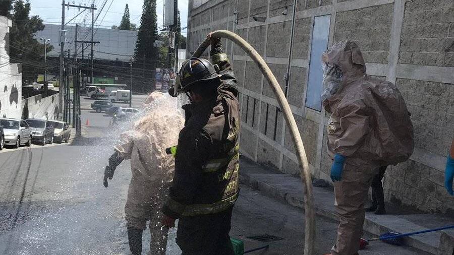 Una fuga de ácido fórmico se registra este lunes en una empresa farmacéutica ubicada en la 13 avenida 0-13 de la zona 2 de Mixco, colonia El Tesoro.