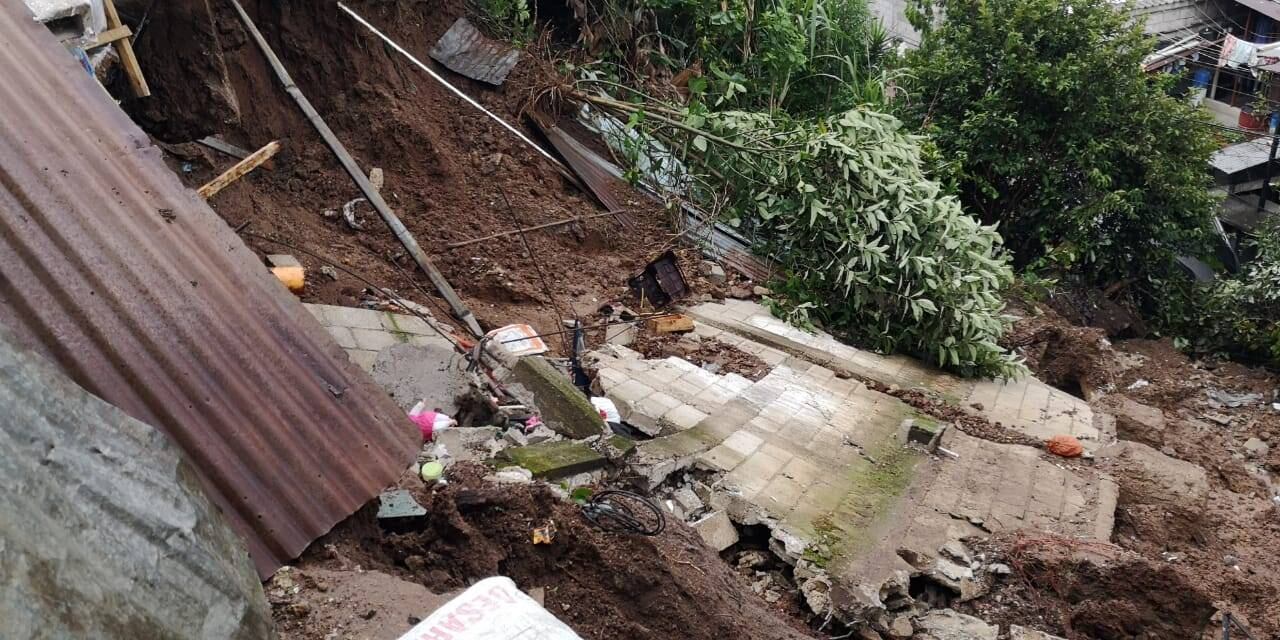 Una posible fuga de agua pudo ser el factor que generó el deslizamiento en un terreno aledaño a la vivienda que resultó dañada.