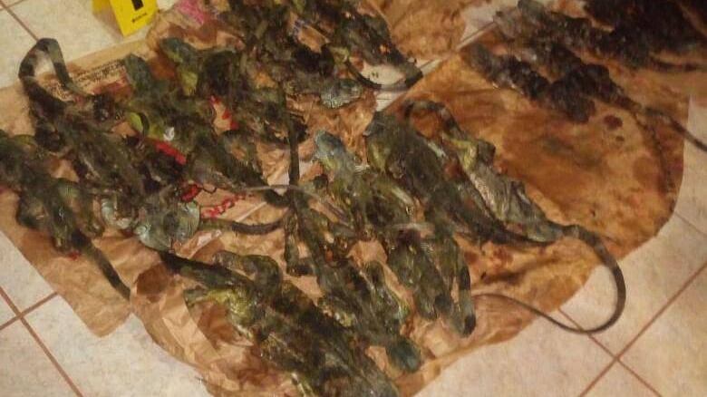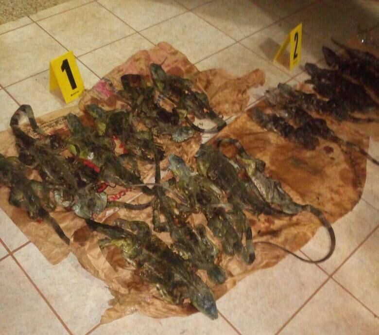 En total se contabilizan 18 iguanas verdes muertas que se encontraban en una caja listas para su comercialización.
