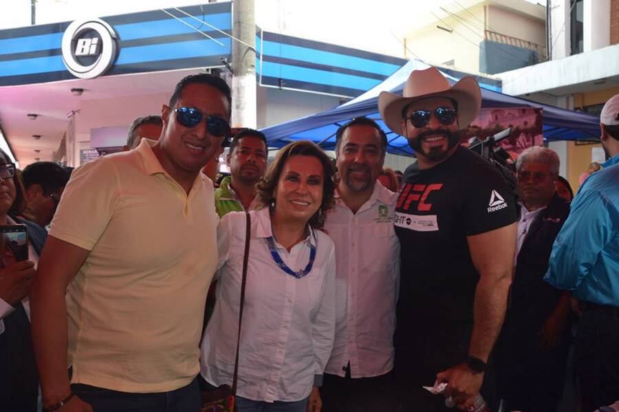 Al momento de llegar a las mesas llegó a su encuentro el alcalde de Mixco, Neto Bran.