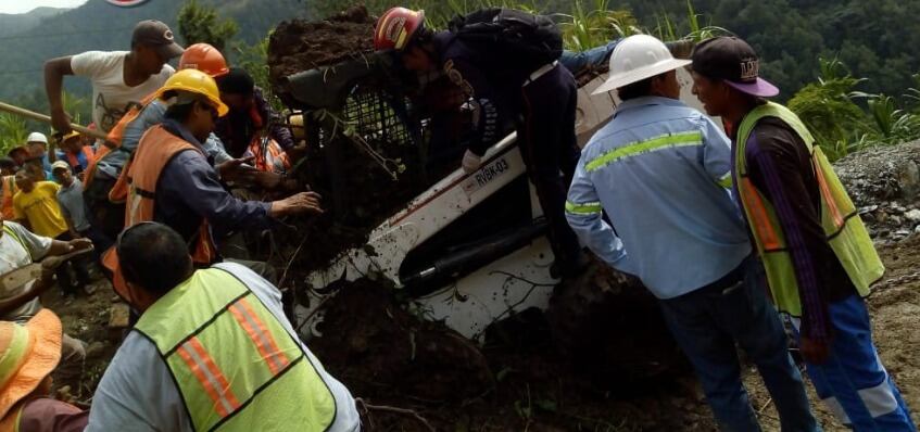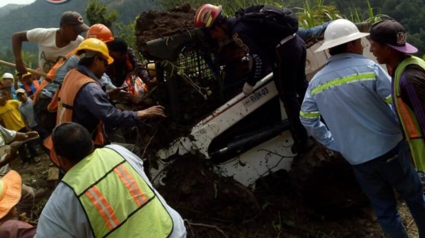 Un hombre que maniobraba una maquina para remover material en la reparación de un tramo carretero quedó soterrado.