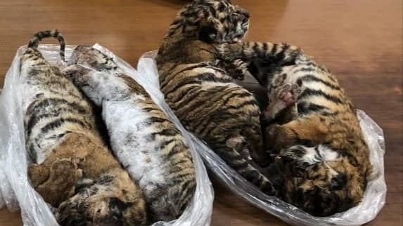 Un hombre, sospechoso de traficar con animales salvajes, fue detenido tras el descubrimiento de siete tigres congelados en un vehículo, en un aparcamiento de Hanói, informaron medios públicos vietnamitas el viernes.
