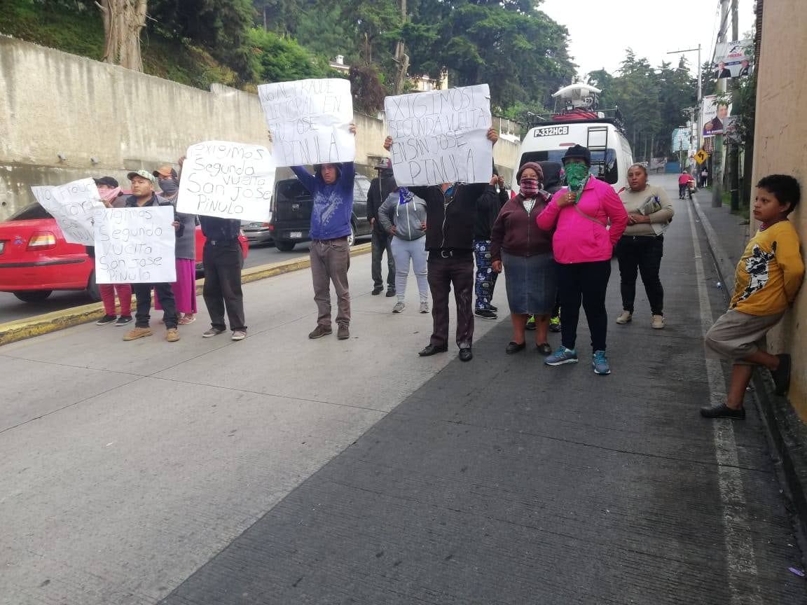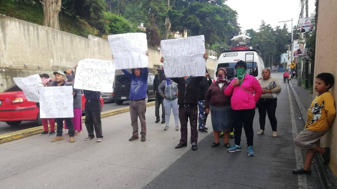 El tránsito se encuentra complicado en la salida de San José Pinula, Guatemala, por la presencia de un grupo de manifestantes.