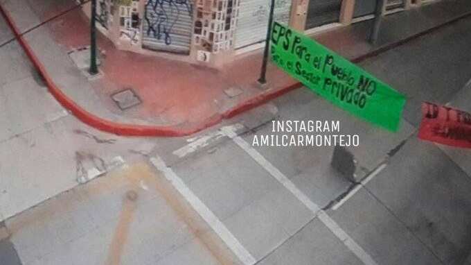 En las calles colocaron mantas en donde se leen diferentes mensajes. “EPS para el pueblo, NO para el sector privado”, se detalla.