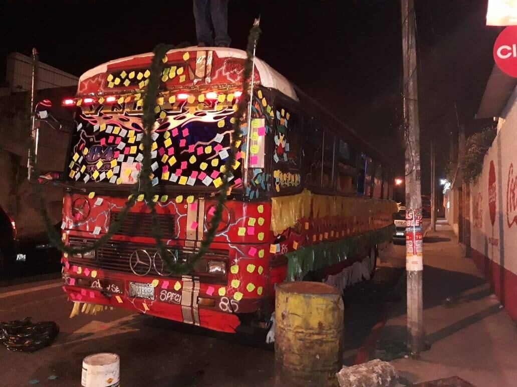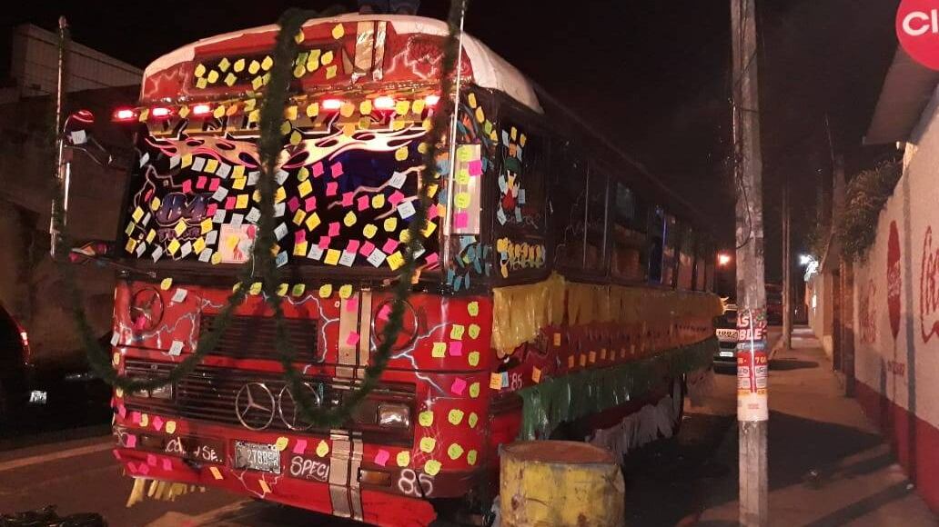 Con la ayuda de algunos amigos y familiares, don *José, quien es piloto de la ruta 84 y lleva más de 10 años de manejar bus urbano, decidió adornar su unidad en horas de la madrugada, por lo que con anticipación había adquirido algunos globos y gusanos de pino.