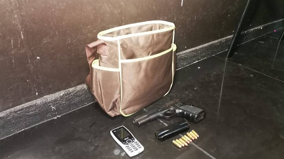 “En el interior de la pañalera llevaba una pistola calibre 9 milímetros con un cargador y ocho municiones”, explicó Jorge Aguilar, vocero de la PNC.
