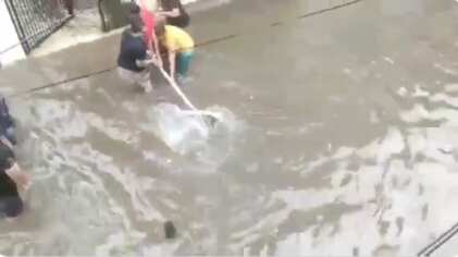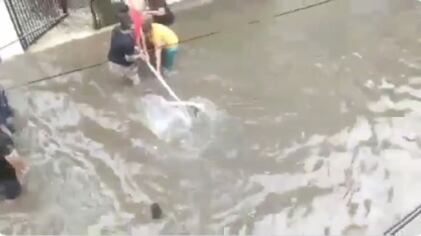 Varios cocodrilos fueron avistados en las inundadas calles de Vadodara, en el estado de Gujarat, en el oeste de India.