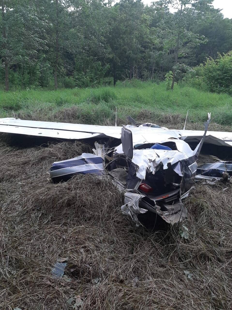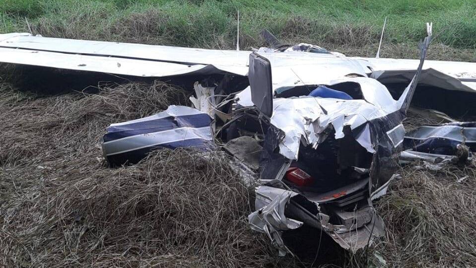 Las fuerzas de seguridad y cuerpos de socorro informaron sobre la localización de una avioneta de color blanco y azul que se encontraba semidestruida.