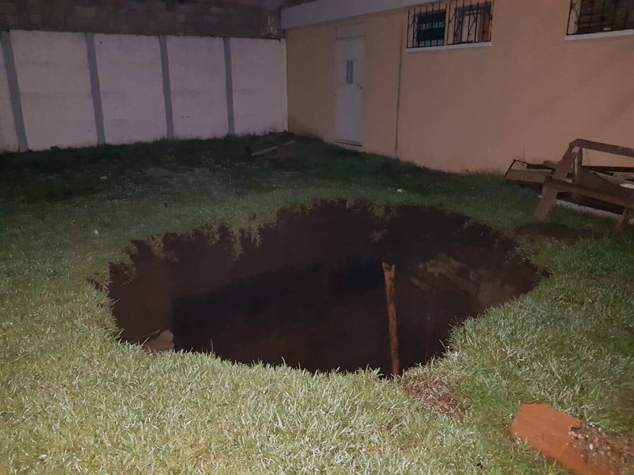 Varias fotografías fueron compartidas por la Conred y por vecinos, en ellas se observaba el hoyo a tan solo un metro de un inmueble.