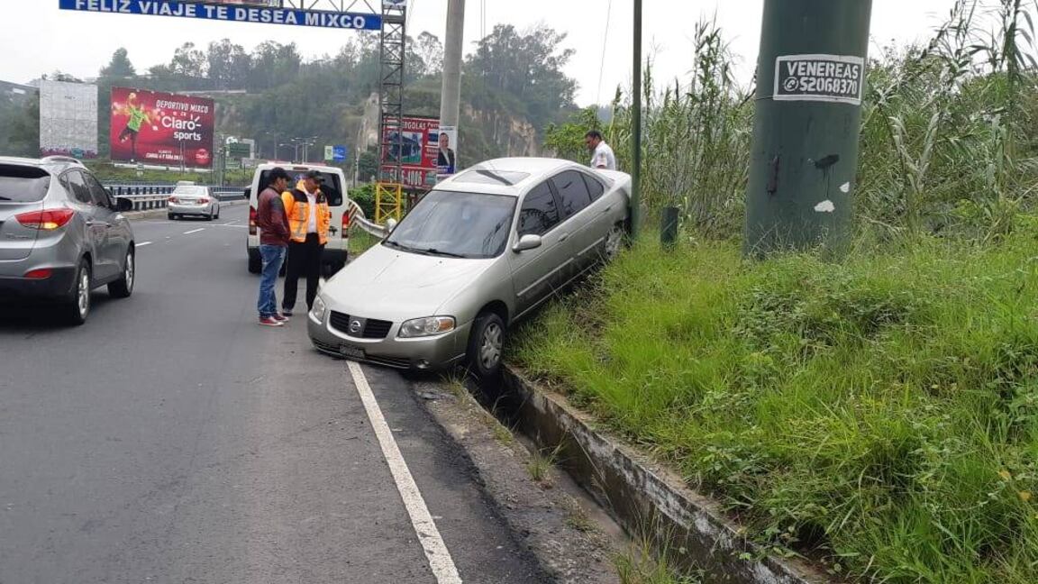 El piloto de un vehículo tipo sedán perdió el control y quedó encunetado en el inicio del puente Las Charcas.