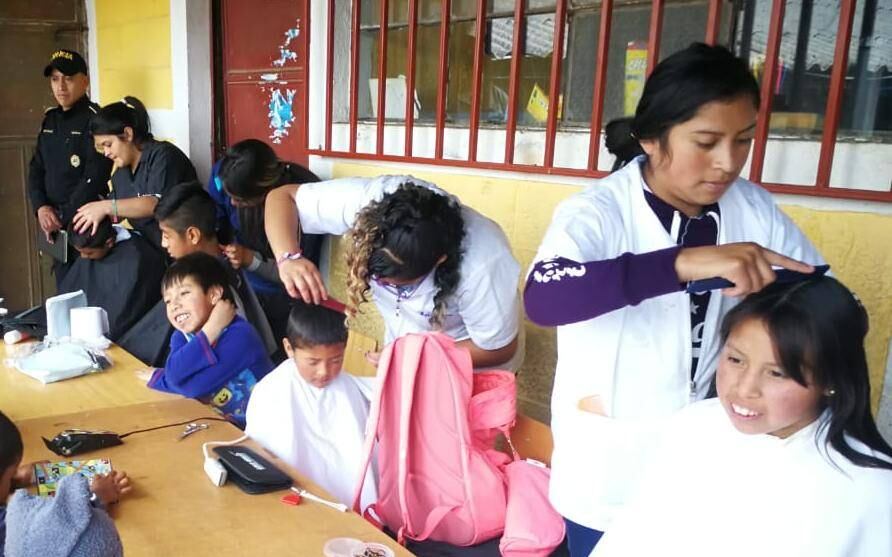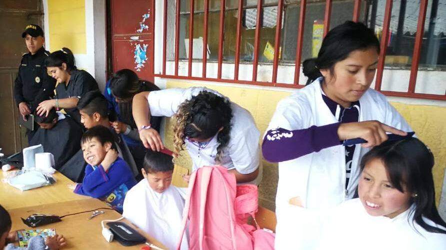 “Con la bendición de Dios, la coordinación de Intecap Quetzaltenango y la directora de la escuela estamos haciendo el corte de cabello”, asegura.