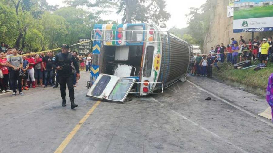 El percance vial ocurrió en la tarde de este domingo. La unidad volcó en el km. 22 de la ruta que conduce de San José Pinula hacia Concepción Pinula.