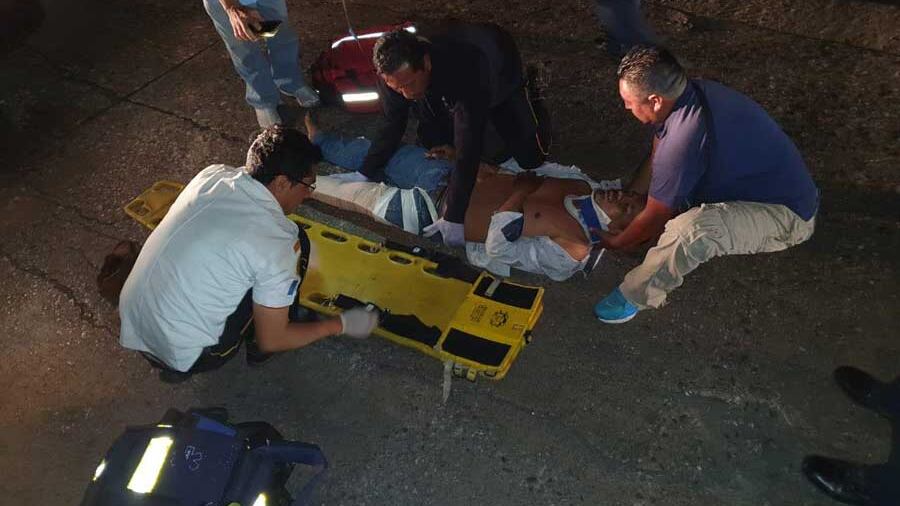 Le entablillan la pierna izquierda y le colocan un cuello. Posteriormente lo trasladan hacia la emergencia del Hospital Roosevelt.