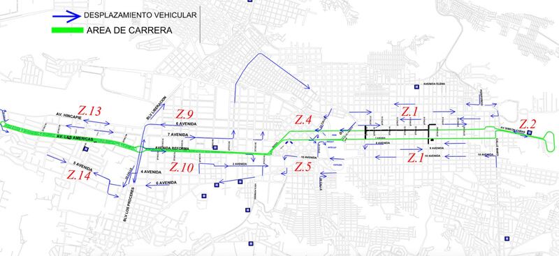 Según Quiñónez se ha coordinado el tránsito vehicular en la ciudad para que los más de 22 mil participantes recorran las calles y avenidas del centro histórico, sexta y séptima avenidas de las zonas 4 y 9, avenida la Reforma y avenida Las Américas.