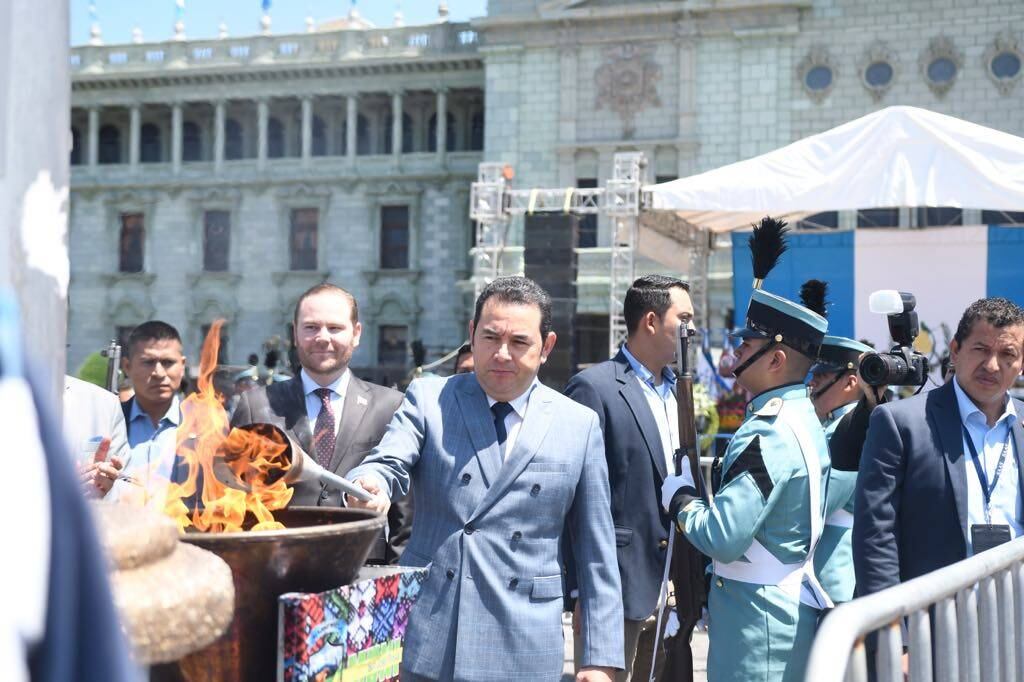 Mediante una ceremonia que se realizó en la Plaza de la Constitución, se encendió el fuego patrio con lo que se da inicio a las fiestas de aniversario de independencia de Guatemala.