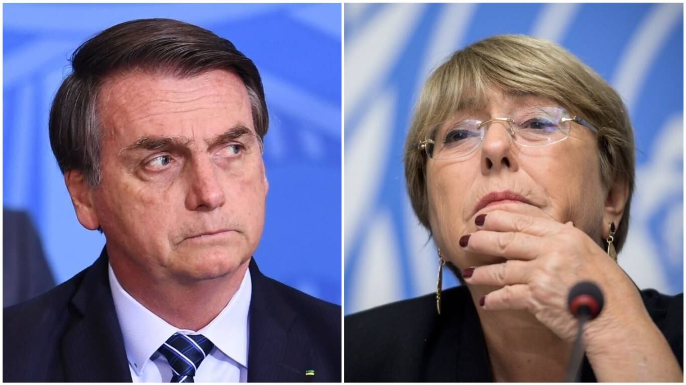 En un mensaje en Twitter, el mandatario ultraderechista señaló que Bachelet, "siguiendo la linea de (el presidente francés) Emmanuel Macron, de entrometerse en los asuntos internos y en la soberanía brasileña".
