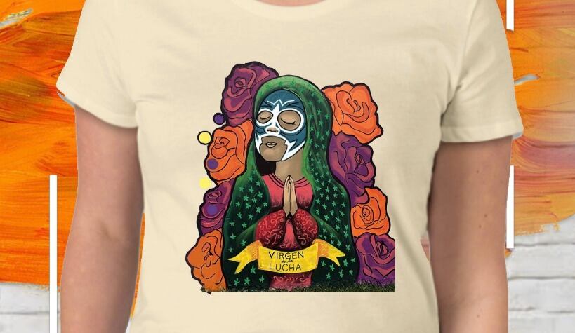 La "Virgen de la lucha" que fue pintada en un mural en la sede de la Comisión Internacional contra la Impunidad en Guatemala (CICIG) se convirtió en playera y está a la venta a través de redes sociales.