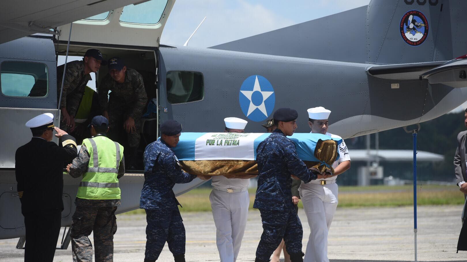 Los restos mortales de tres soldados que murieron en un incidente ocurrido en El Estor, Izabal, fueron trasladados vía aérea a la capital.