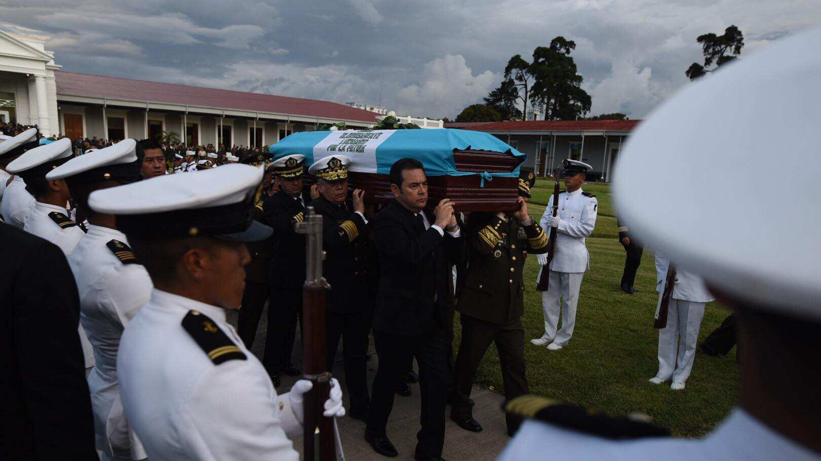 Los restos mortales fueron trasladados vía aérea la mañana de este viernes 6 de septiembre. En las instalaciones de la Fuerza Aérea Guatemalteca (FAG) fueron recibidos. Ahí se conformó una valla de honor por las tres fuerzas castrenses (aire, mar y tierra).
