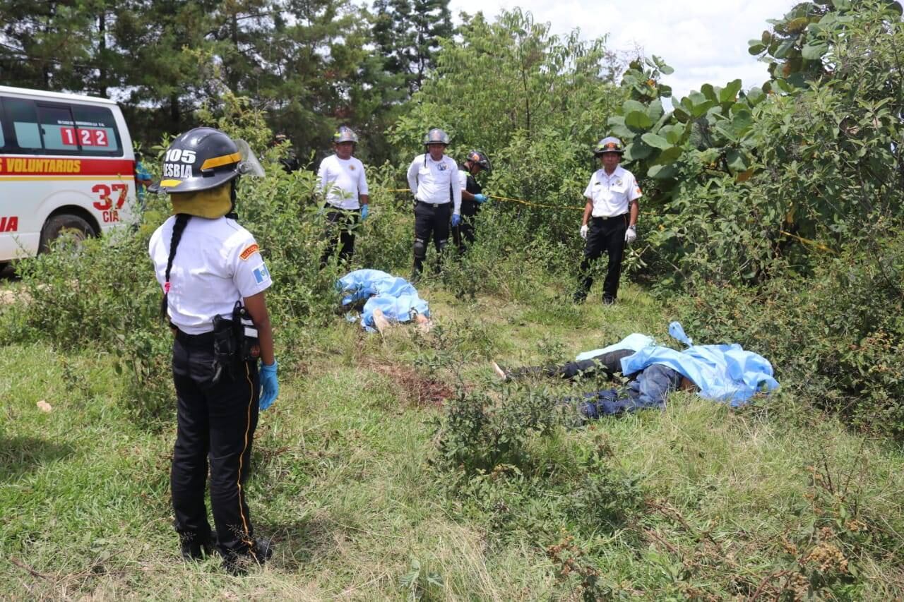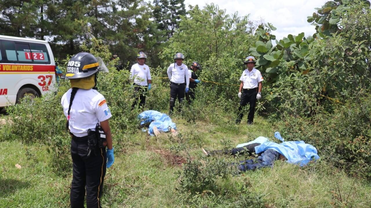 Varias llamadas ingresaron a la cabina de emergencia de Bomberos Voluntarios, por el hallazgo de tres personas fallecidas. Los tres con señales de tortura, en el caserío Cruz Verde, en San Juan Sacatepéquez. Presuntos extorsionistas.
