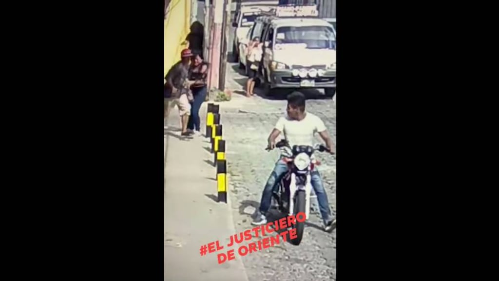 - Uno de los dos, el que viajaba en la parte trasera de la motocicleta, salta al suelo y corre hasta desaparecer del campo de visión de la cámara.
