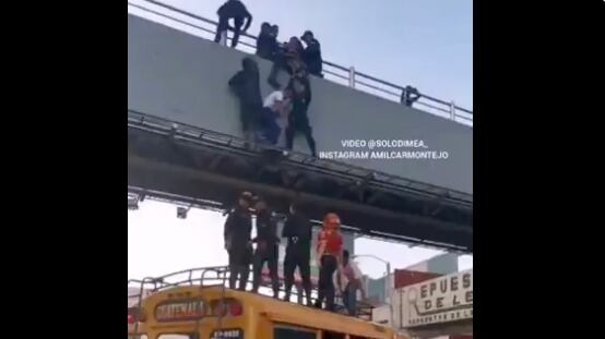 Para detener el acto mortal de la mujer, los socorristas y los policías solicitaron a un microbús que se estacionara bajo de la pasarela. Además, otros elementos subieron para ayudarla a retroceder.