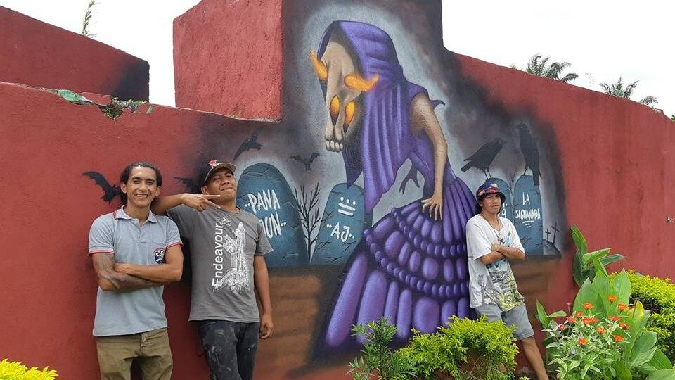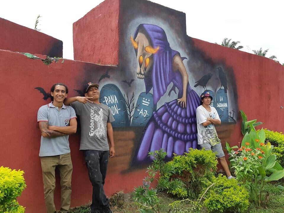 Jóvenes pintan murales en el departamento de Retalhuleu resaltando personajes de leyendas guatemaltecas