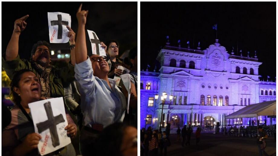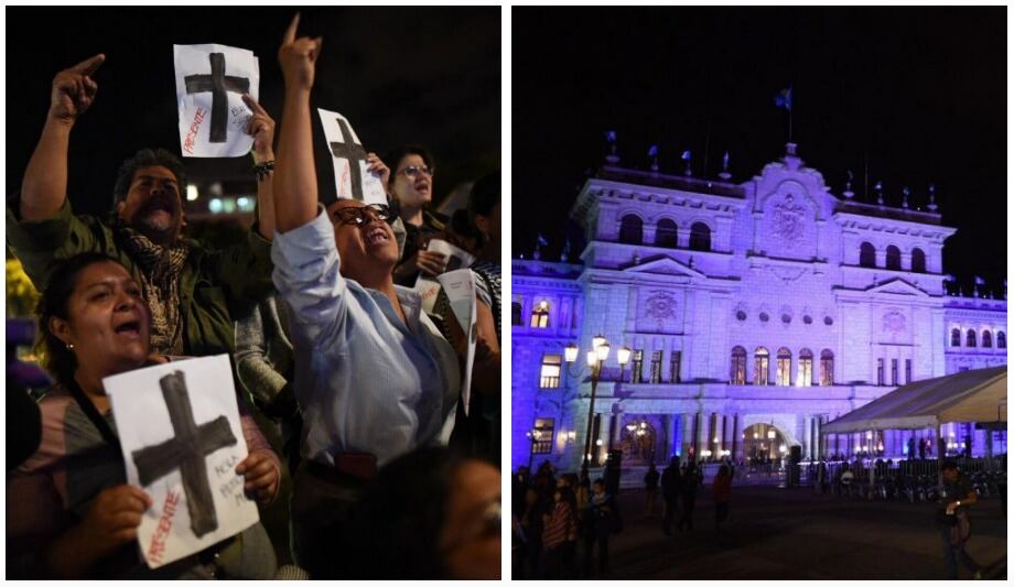 Durante el acto protocolario, un grupo de personas se hizo presente con carteles y alzaron su voz contra el presidente Jimmy Morales.