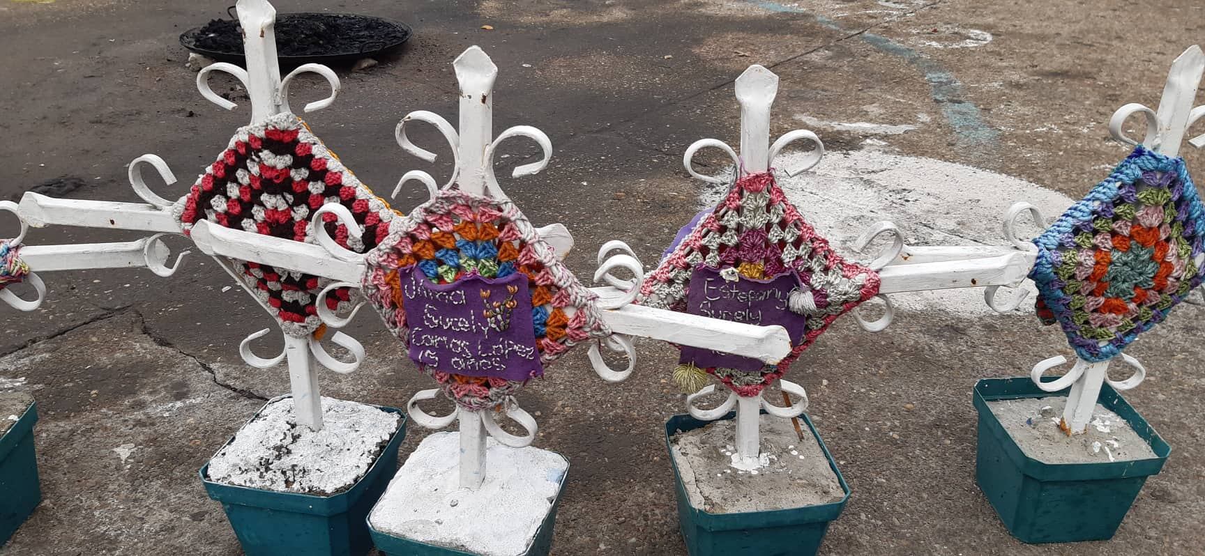 Un total de 41 cruces de metal habían sido colocadas en el área por organizaciones sociales para representar a igual número de niñas y adolescentes que fallecieron. A cada una se le colocó el nombre de una menor.