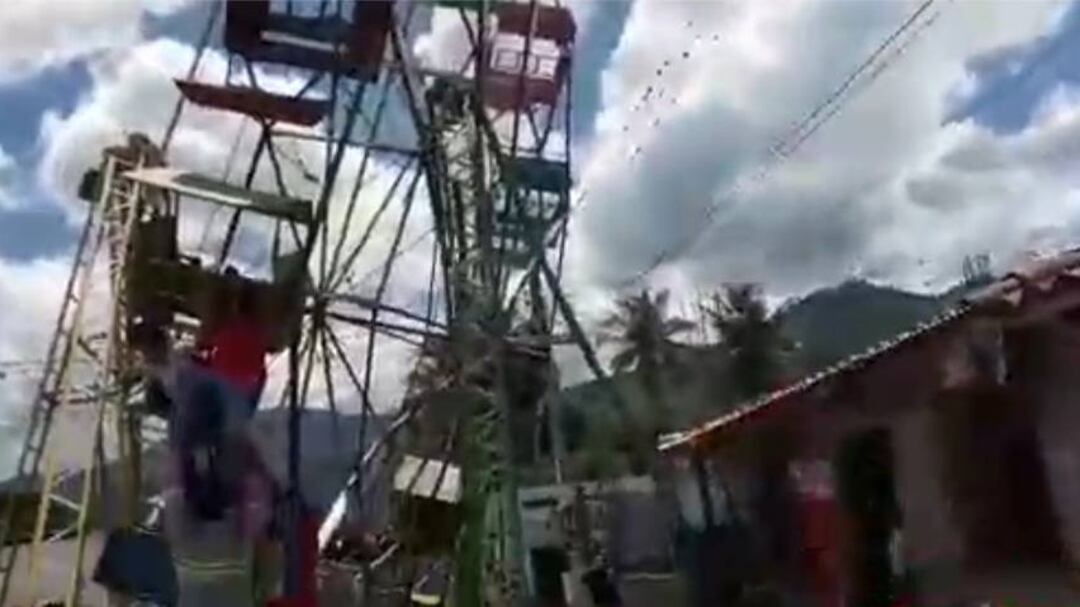 Además una pareja de jóvenes quedó colgada de uno de los sillones de la rueda mientras algunas personas corrían a ayudarlos.