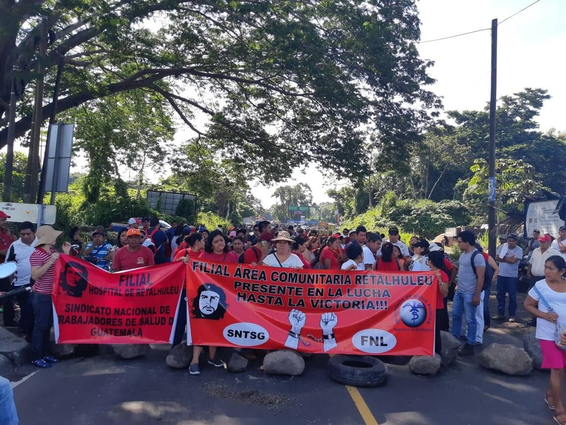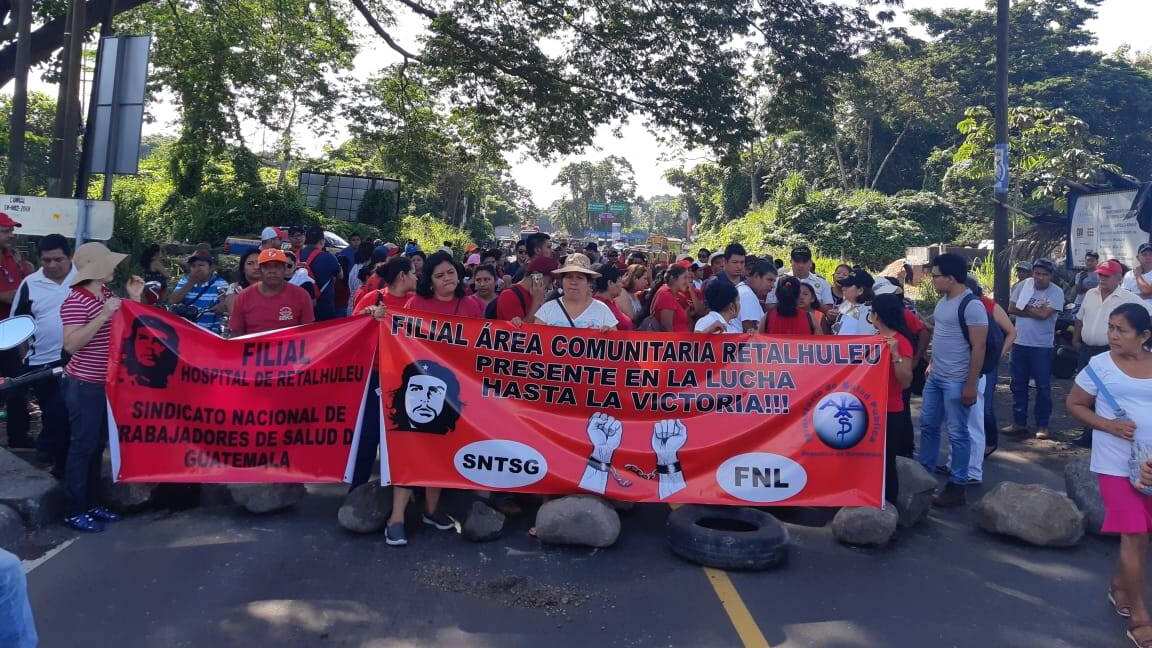 Integrantes del Sindicato Nacional de Trabajadores de Salud de Guatemala (SNTSG) mantienen este miércoles una serie de bloqueos en carreteras del interior del país.