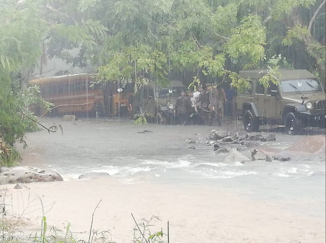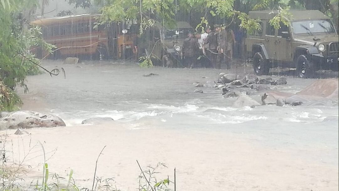 Un bus que transportaba turistas de nacionalidad salvadoreña fue arrastrado varios metros por un río crecido a causa de las lluvias cercano a la comunidad La Estancia, en el departamento de Jutiapa.