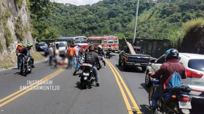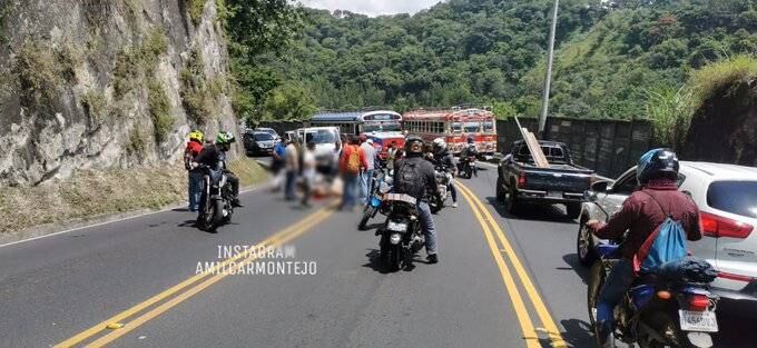 Se trató de una fuerte colisión en el kilómetro 10.2 de la ruta entre Boca del Monte y la Ciudad de Guatemala, la cual involucró al vehículo de dos ruedas y un automóvil particular.