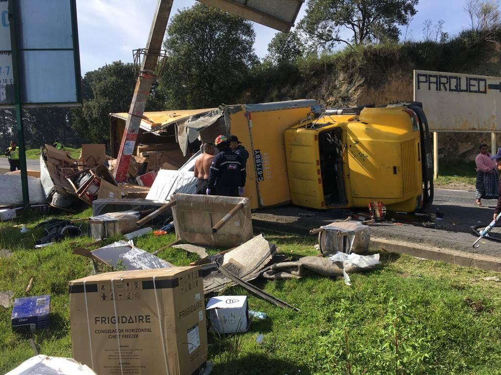 El camión transportaba electrodomésticos y aparatos de línea blanca como congeladores y estufas.