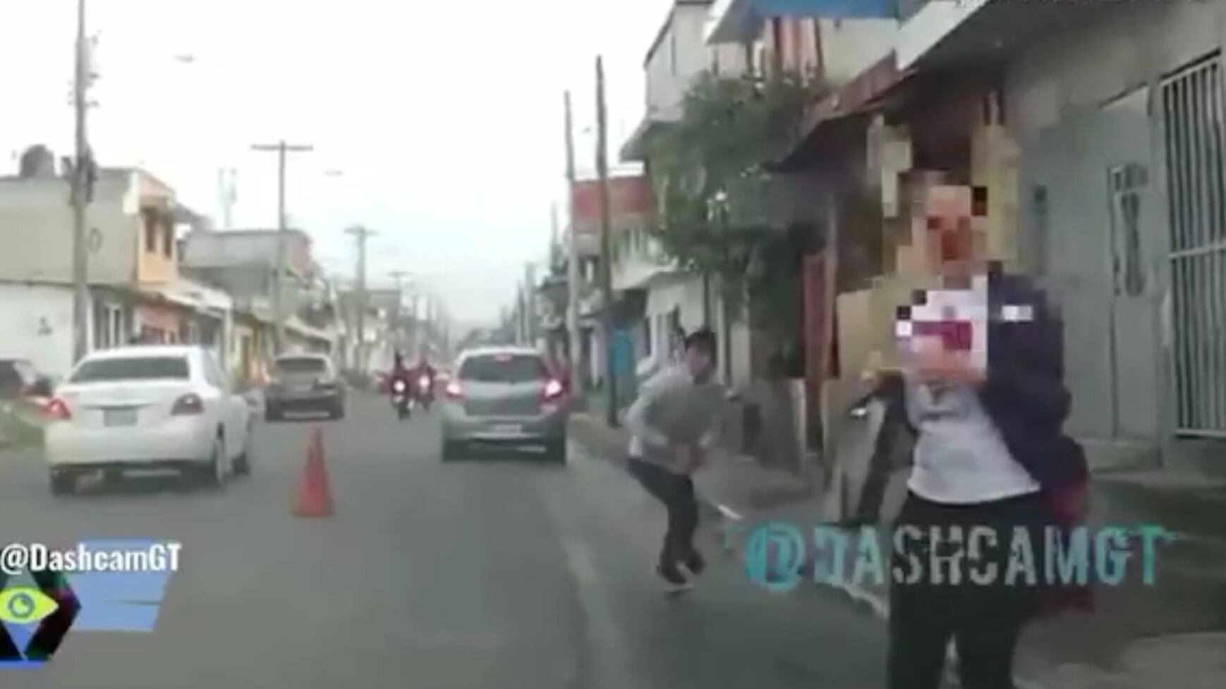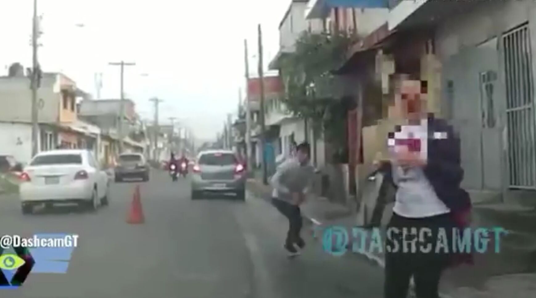 Las cámaras de un vehículo captaron el ataque a la mujer, que corrió entre los vehículos mientras huía de su agresor.
