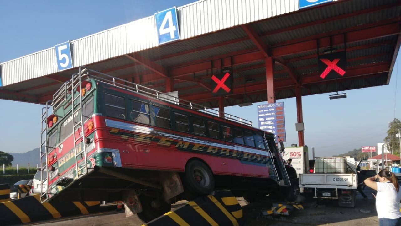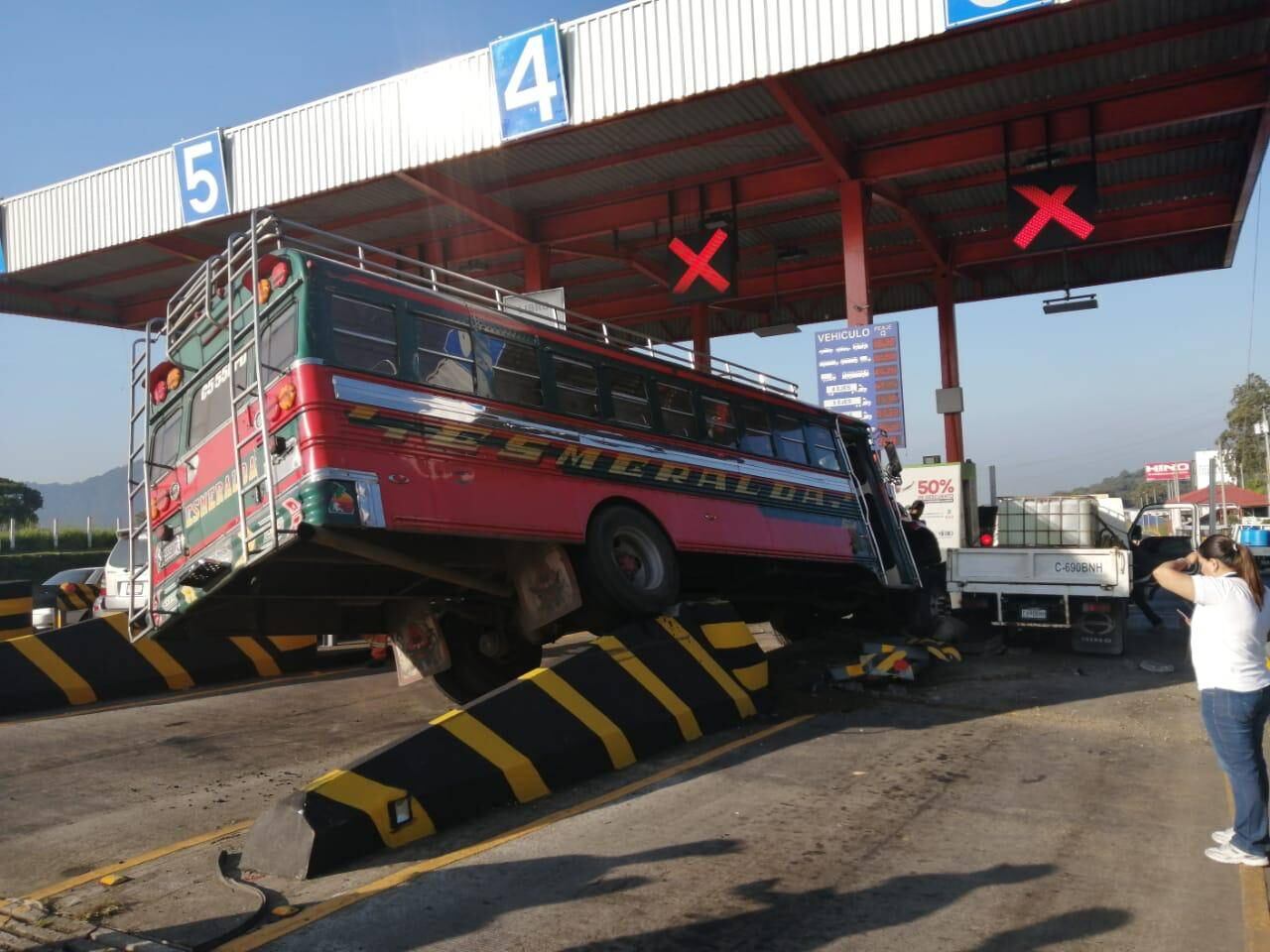 Un bus extraurbano chocó este jueves 3 de octubre en contra de las garitas de peaje en la autopista Palín-Escuintla, en el kilómetro 40. Se reportan varios heridos.
