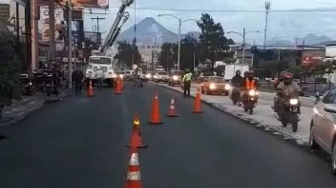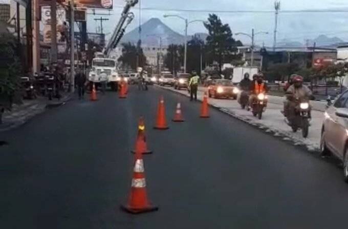 Este viernes se registran complicaciones en el tránsito que se dirige desde Villa Nueva hacia la Ciudad de Guatemala, debido a un accidente vehicular que dejó un poste derribado.